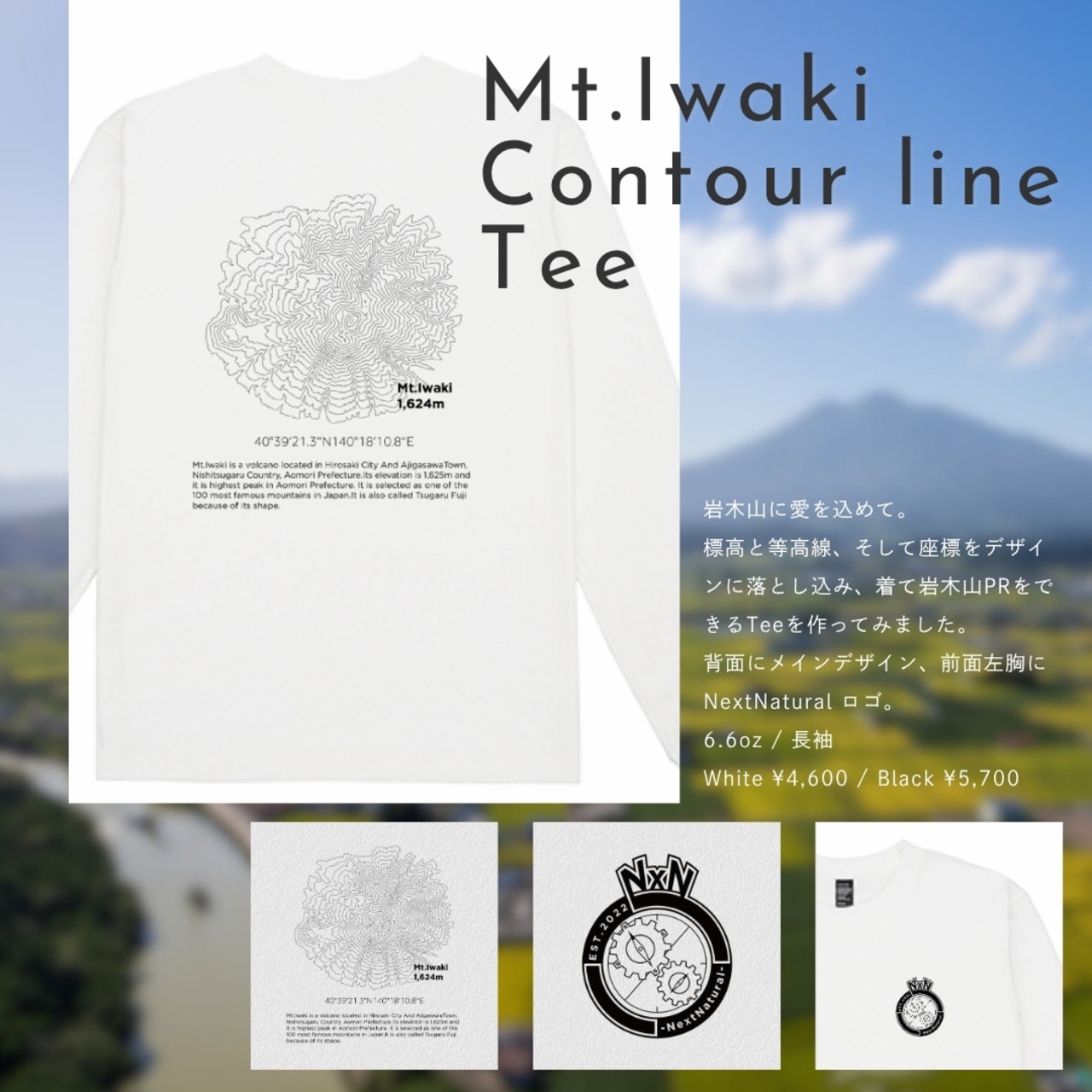 標高と等高線、そして座標をデザインに落とし込み、着て岩木山PRをできるTeeを作ってみました。