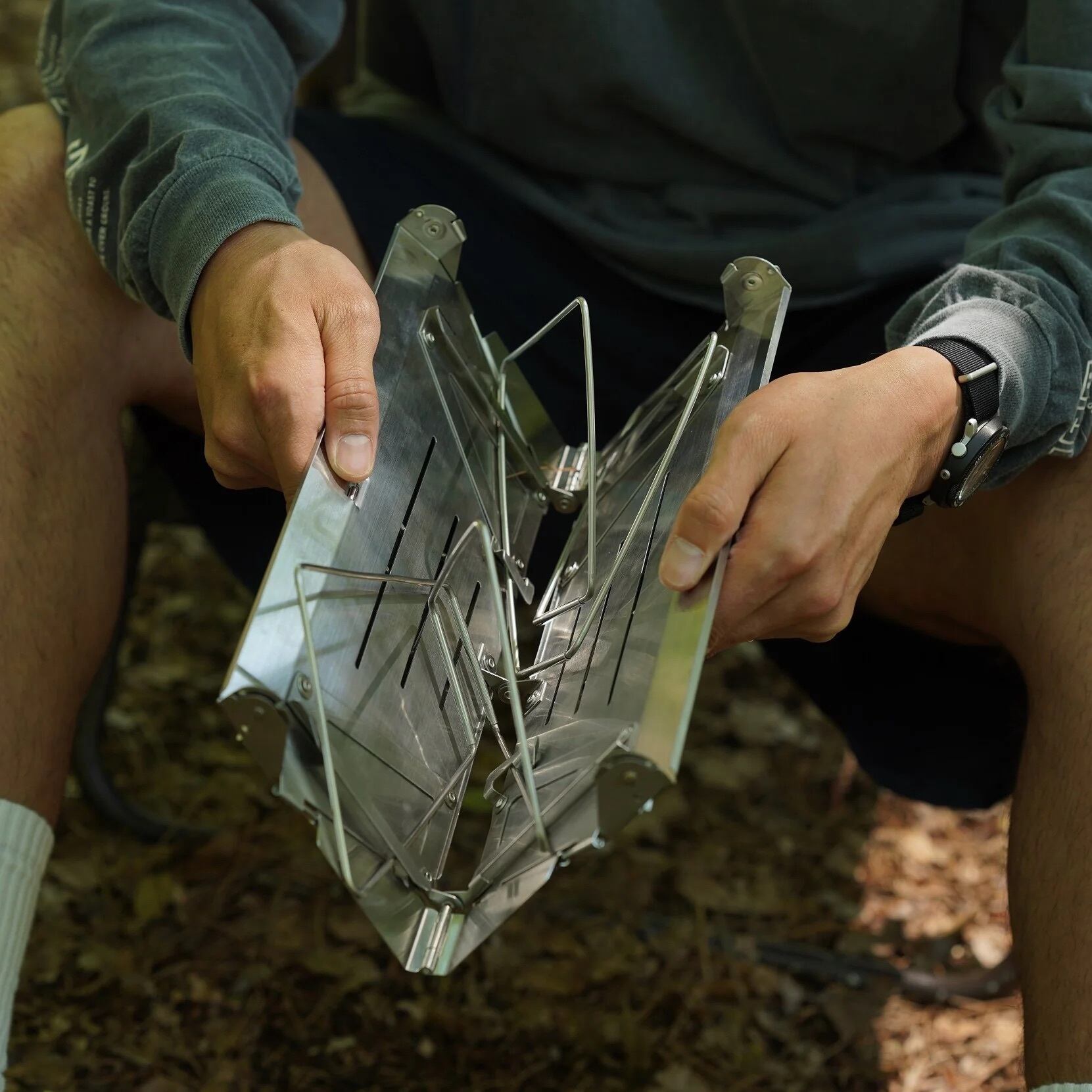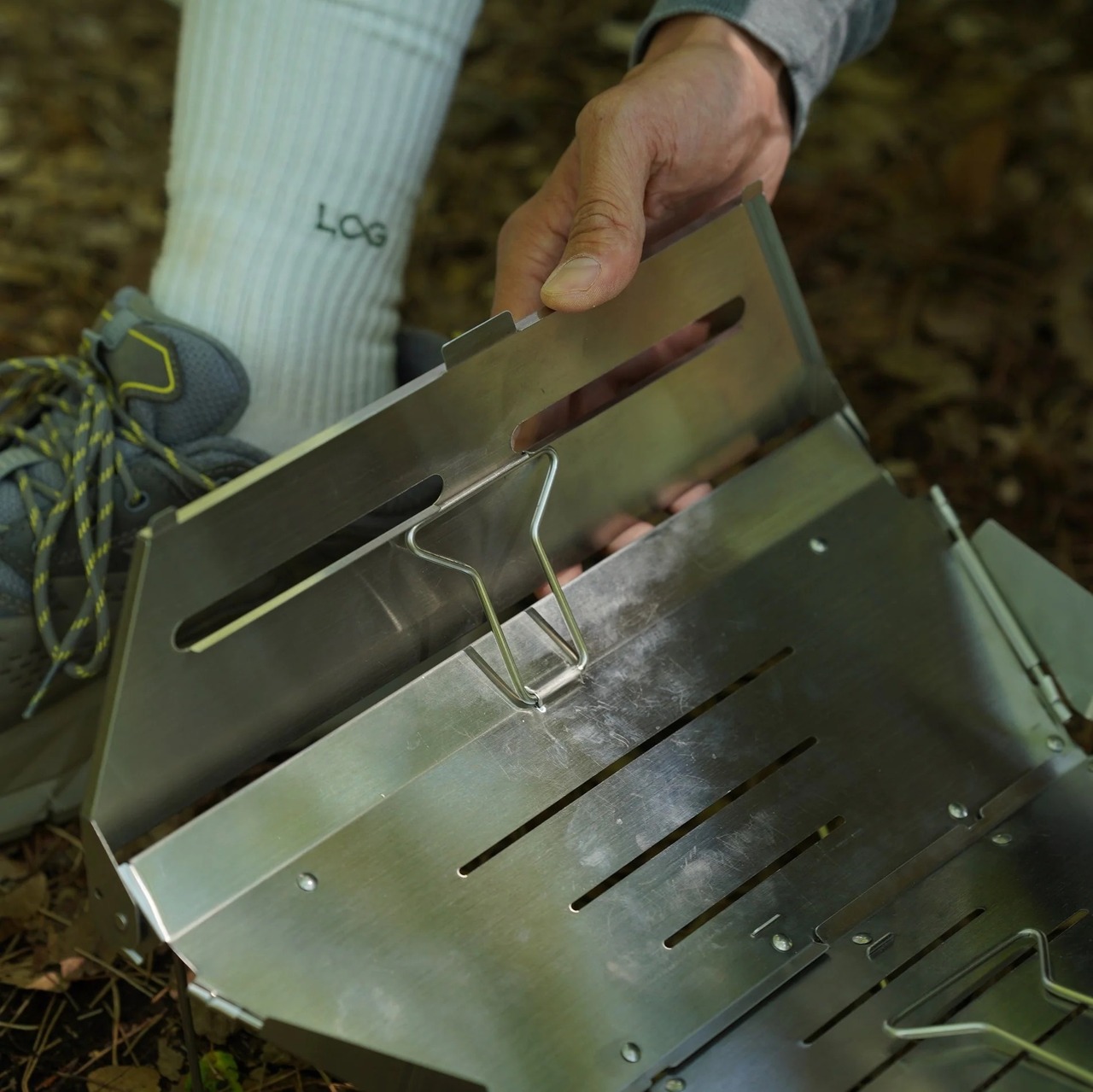 *本製品は開くだけで組み立てが完了するポップアップ式の焚火台ですが可動部のパーツに燃えかすや樹液などが入ると動きが鈍くなります。より長くご愛用頂くために、ご使用後は都度可動部のクリーニングと定期的に潤滑剤を挿すなどのメンテナンスをお願い致します。