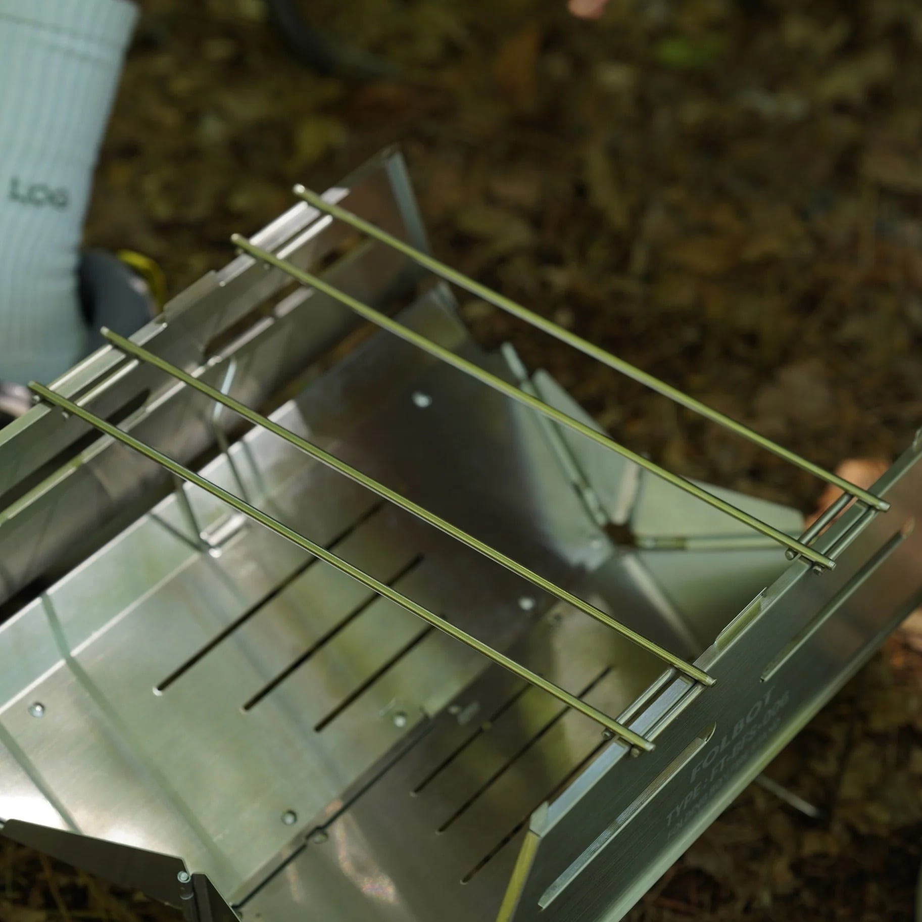 スピット型五徳が2つ付属しており、ケトルやクッカーを載せての焚火調理が可能。