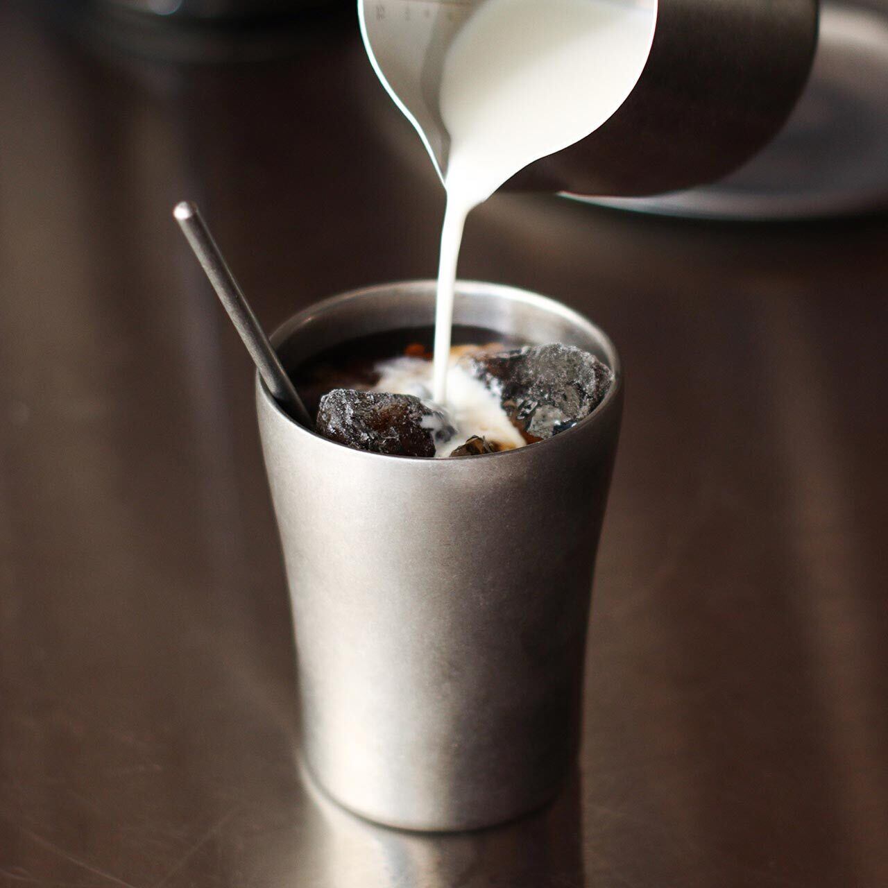 ダブルウォールタンブラーは冷たいものも熱いものも温度が変化しにくい 中空断熱構造になっており、熱い飲み物を入れても素手で持つことができます。