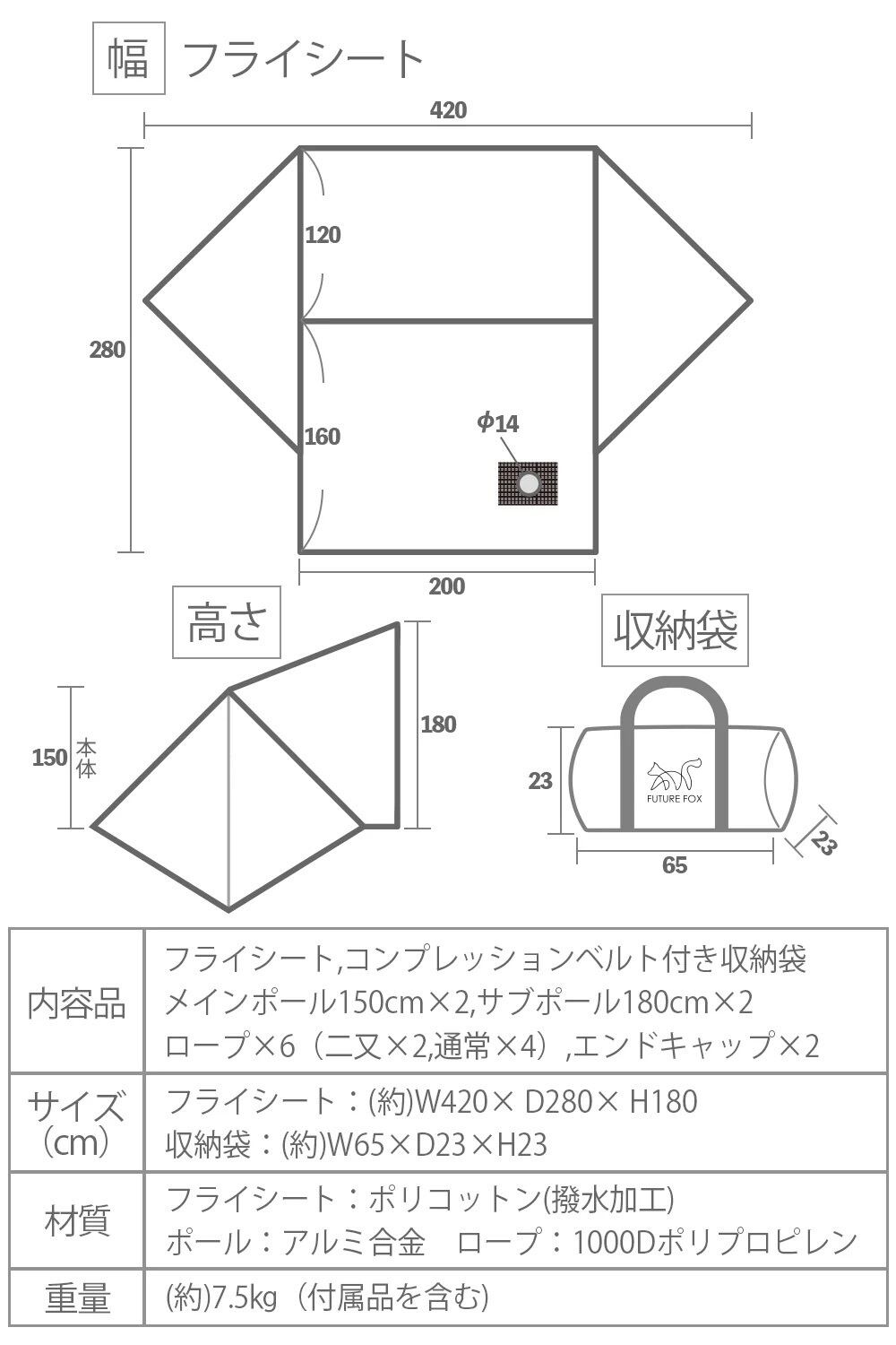 メインポールの高さも150cmとFOX-BASEより20cm高く設計したので、内部空間がとても広く、テント内でも快適にお過ごしいただけます。